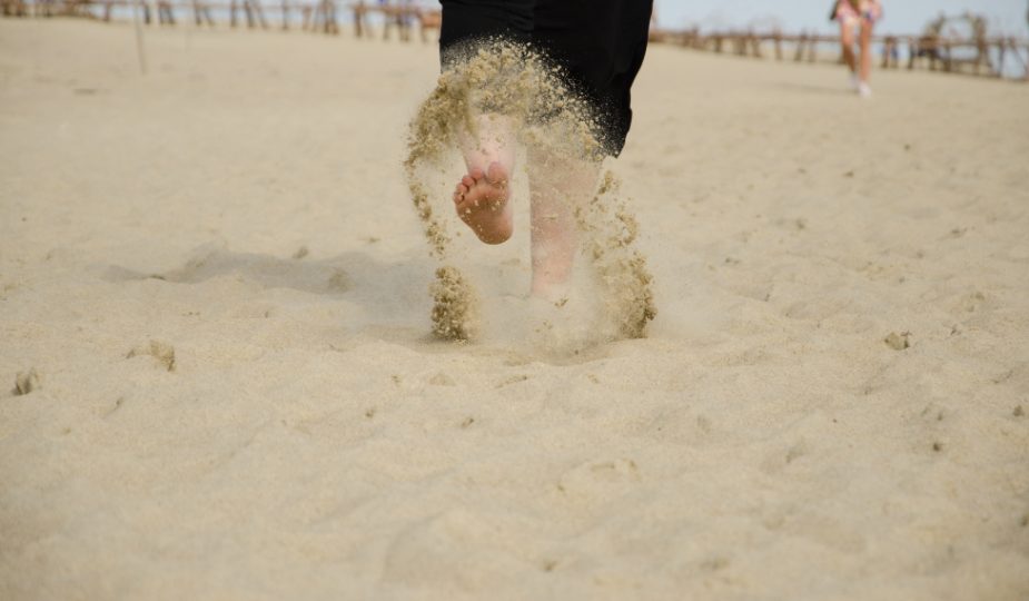 Ensin matkaa taitettiin laudoituksen päällä. Seurasimme brittiläistä pariskuntaa, ja me kaikki tunnuimme pohtivan, voisiko matkaa taittaa paljain jaloin. Hiekkaa oli varpaiden välissä ja meriveden kastelemat sandaalit alkoivat hiljalleen hiertää. Kaikkialla oli kaunista, aurinko paistoi ja tuuli lennätti hiekkaa välillä ankarastikin. Juuri, kun paljaat varpaat olivat tottuneet lauta-alustaan, laudoitus loppui ja loppumatka taitettiin hiekassa tarpoen. Hiekka oli todella upottavaa, joten liian pitkäksi aikaa emme voineet jäädä maisemia ihailemaan. Muutamat turistit luovuttiva kesken kaiken, kun jalka ei enää noussutkaan loputtomassa hiekkameressä, ja mekin silmäilimme toisiamme merkitsevästi. Kumpikaan ei uskaltanut sanoa ääneen sitä, mitä toinenkin ajatteli: että pitäisikö kuitenkin kääntyä ja lähteä jatkamaan autolla matkaa.