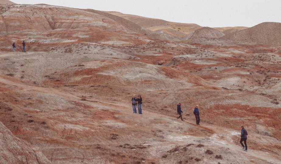 Ajettuamme Bakusta noin tunnin, auto pysähtyy ison tien reunaan. Sivuovi avautuu ja punertavat vuoret kohoavat heti edessämme. Vaikka kuinka koetan pysyä optimistisena, ensimmäinen tunne on pettymys. Kallioissa ei näy lainkaan somesta tuttua hattaraista väriä, vaan pinta on jotenkin tunkkainen ja muistuttaa lähinnä marjapuuroa. Huomaan miettiväni, että tässäkö se nyt on.
