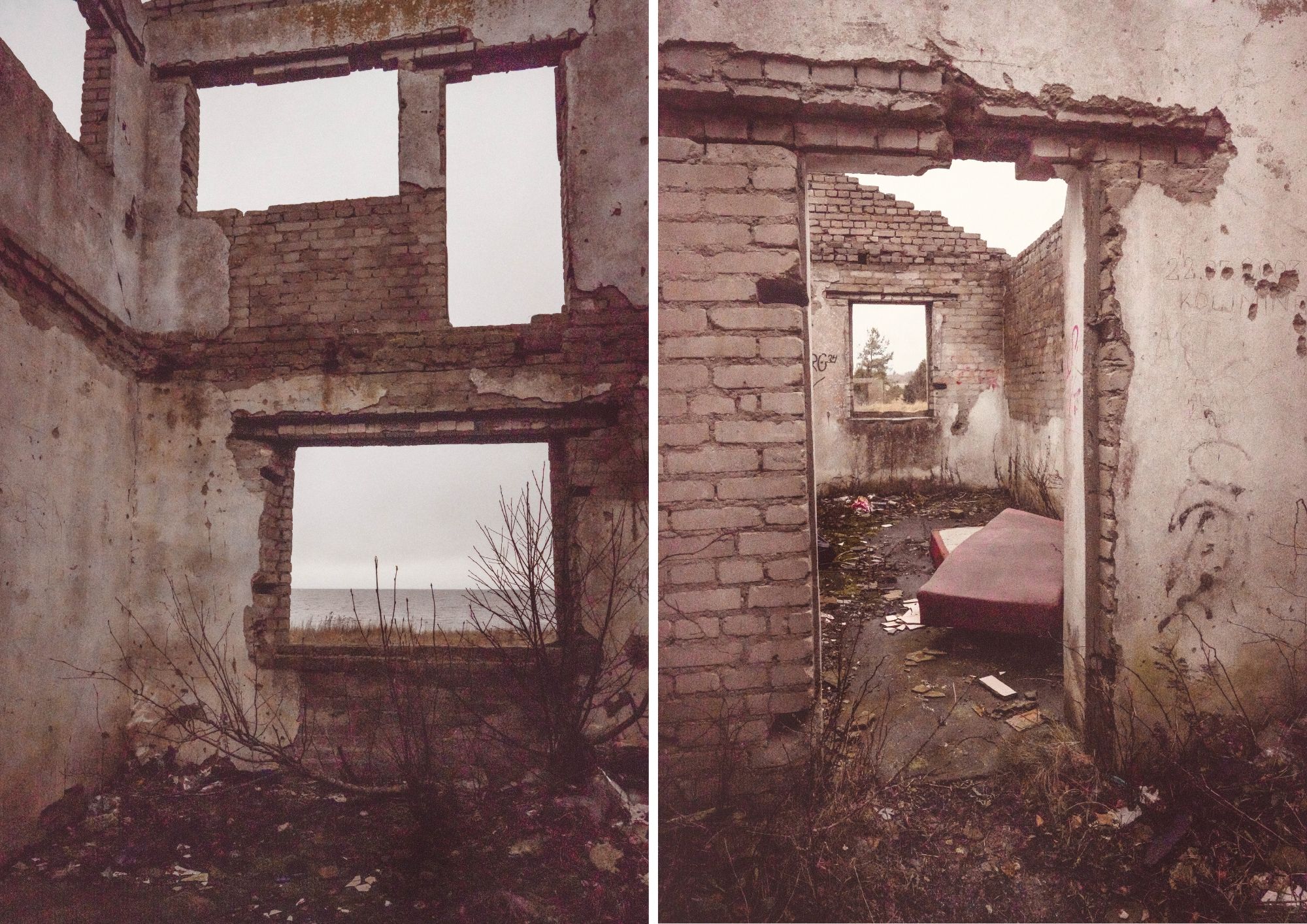 Lähtiessämme ajamaan Paldiskista kohti Keilaa, bongasimme meren rannalta upean näköisen hylätyn talon. Kuski pysäytti auton keskelle tietä ja kysyi, pitäisikö käydä kurkkaamassa taloa lähempää. Ai että pitäisikö?! Ja niin käänsimme auton ympäri, parkkeerasimme sen hiekkatien päätyyn ja lähdimme kävelemään talolle. Vaikka se nyt olikin hurjassa kunnossa, saatoin kuvitella, miten upea se joskus oli ollut. Myös näkymät merelle olivat upeat.
